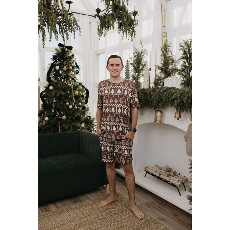 Our men's bamboo short sleeve pajama set! Made of ultra-soft bamboo fabric, this set features a relaxed short sleeve top and comfortable shorts. Be sure to look at our baby and toddler pajamas in this matching print!** Please note: All holiday items are fi