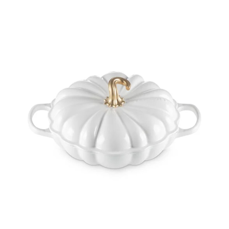 Recognized for its strength and durability, as well as its beauty and quality, Le Creuset produced the first enameled cast iron cookware nearly a century ago. A tradition of maintaining the finest culinary craftsmanship, combined with the latest innovations, means Le Creuset is made for home cooks and professional chefs alike.The Signature Pumpkin Braiser is uniquely designed to provide steady, even heat to transform tough cuts of meat and hearty vegetables into tender, flavorful dishes. The wide base allows ingredients to be placed in a single layer for searing without crowding; once liquid is added, the domed lid circulates steam to lock in moisture and flavor. The versatile festive shape of the braiser also makes it perfect for shallow frying, steaming, stews, casseroles, and serving at the table.