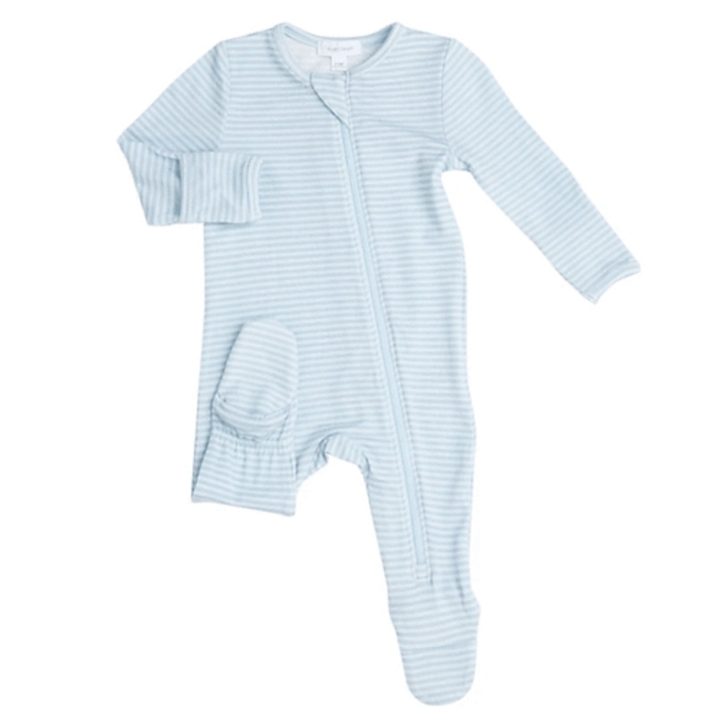Simple Blue Striped Zipper Footie NB
