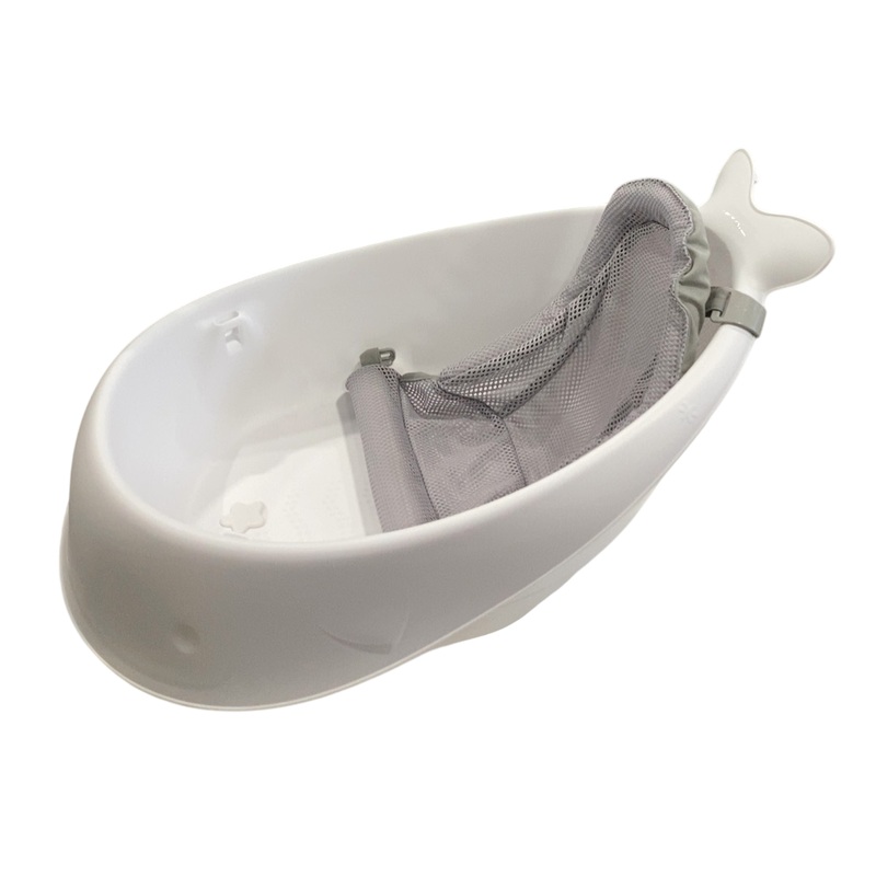 Condition: Gently Used This adorable whale tub is designed to grow with your child from newborn to toddler. The comfortable mesh sling locks into 2 positions: higher for full body support, or lower for seated support. When your baby is sitting confidently