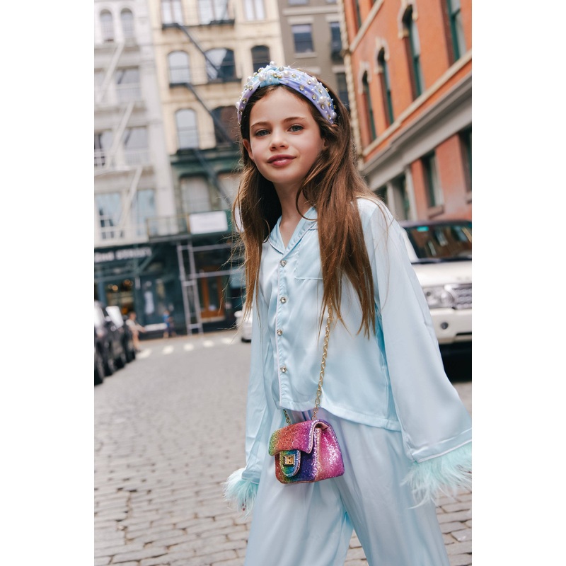 Description:Elevate your wardrobe with this enchanting sky-blue set, featuring feathered cuffs for a touch of glamour and sophistication.The button-up top with a classic collar and matching pants with an elastic waistband ensure a comfortable yet stylish f