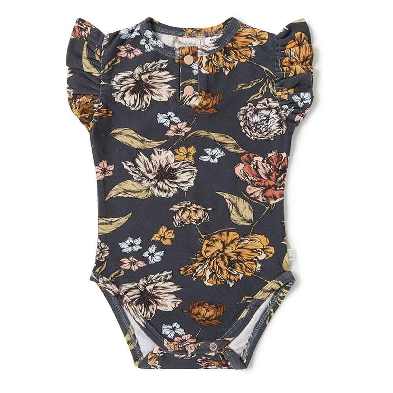Snuggle Hunny organic bodysuits are made for babies and toddlers and our exclusiveBelle print is bold and bright. This bodysuit is short-sleeved with a delicate frill, perfect for warmer weather, and under layers. Soft and stretchy, they are easy-care and coordinate. Our bodysuits are also really comfortable to sleep in.