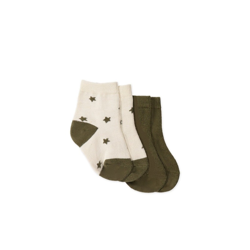 Socks 2PK Rib | Twinkle Toes Deep Olive Stars