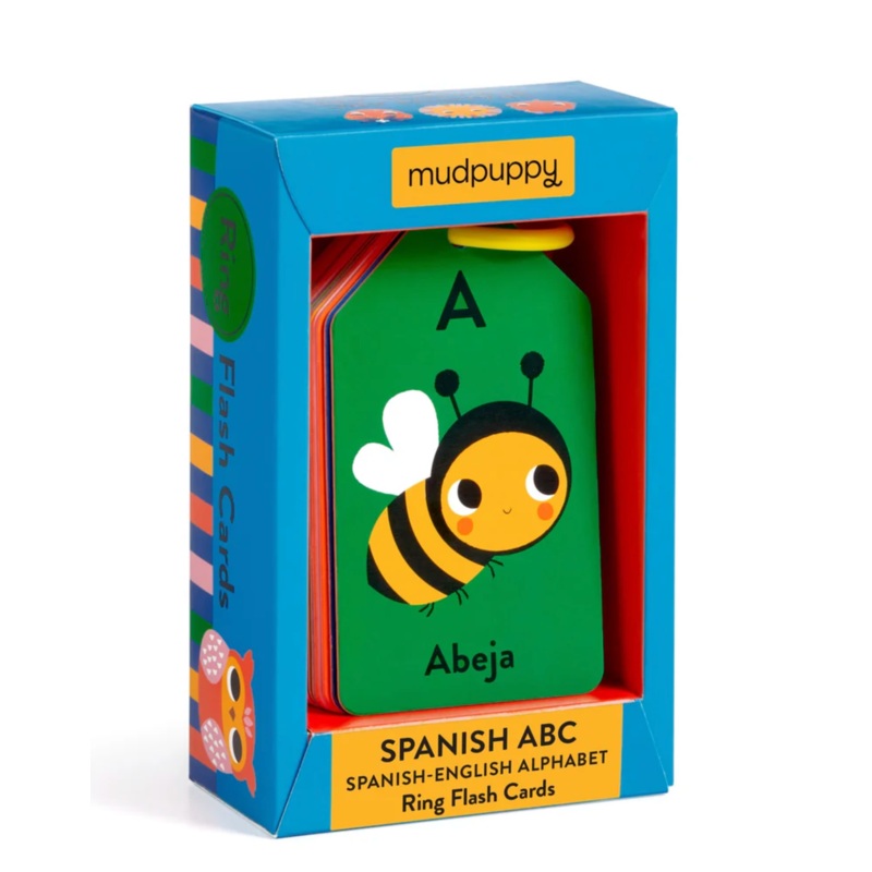 Encourage the love of language with the educational Spanish-English ABC Ring Flash Cards by Mudpuppy. Each double-sided card features charming illustrations of a Spanish word associated with a letter of the alphabet. On the reverse side, an English transla
