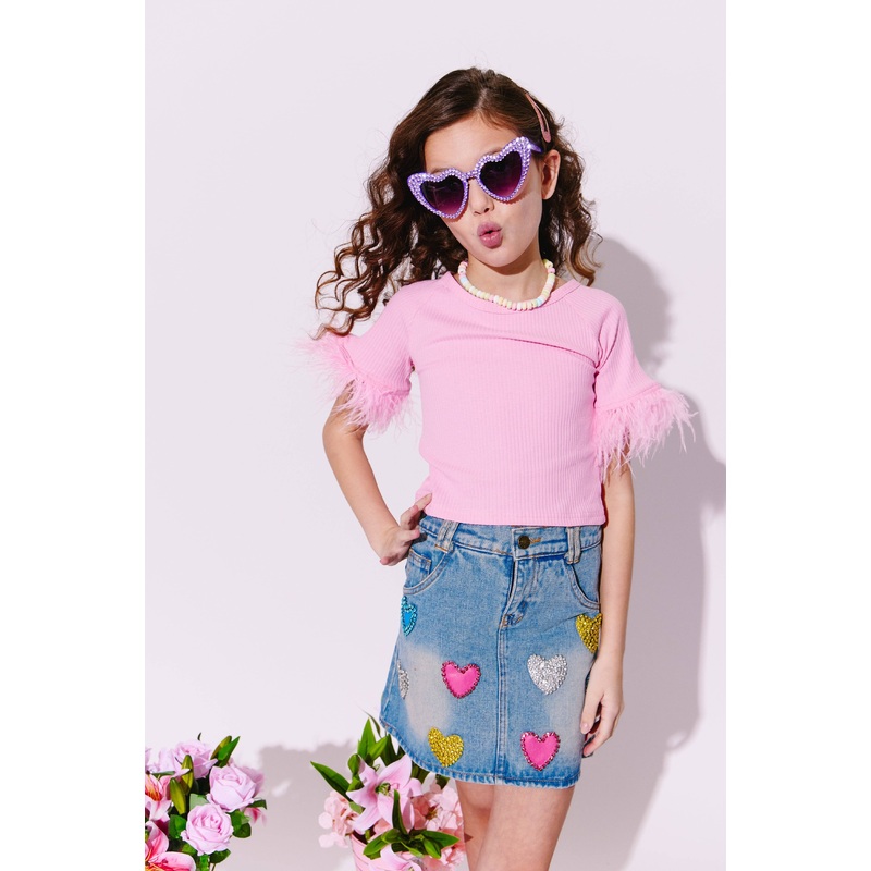 - Elevate her style with the Sparkle Heart Denim Skirt, featuring dazzling heart-shaped embellishments in various colors.