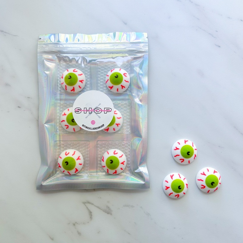 This set comes in a pack of (6) piecesProduct DetailsCreate a silly and spook-tacular Halloween treat with these frightening eyeball decorations. Made of finely granulated sugar molded into shapes and painted with edible food color.Dimensions:EYEBALL SUGAR