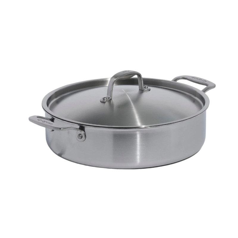 Born out of a 100-year old, family-owned restaurant supply business, Made In brings restaurant-quality, performance kitchenware to home cooks around the world. The brand sources the highest quality raw materials and designs products to the exacting standards of the worlds best chefs.Crafted in Italy, the Stainless Clad Rondeau is constructed from 5 layers of metals for improved heat conduction and distribution. Because it prevents the hot spots that lead to stuck-on messes, the 5-ply construction also cleans up in seconds. Its rolled rim allows you to pour without spilling, and two looped handles make transport from stove to oven to table a breeze.