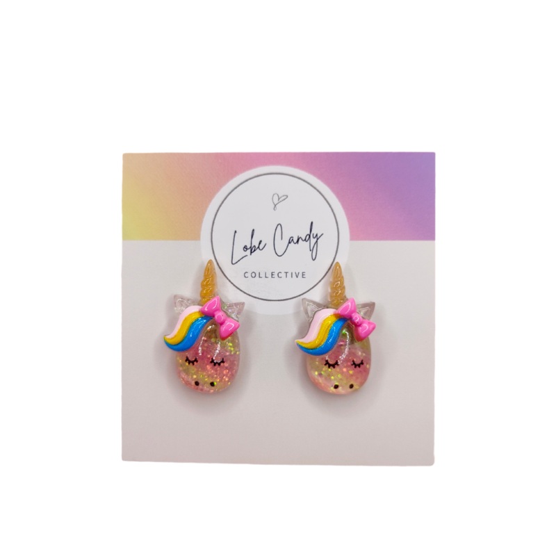 Starlight unicorn is one for the collection, with her bright and shimmery design. Hand assembled and suitable for most sensitive ears using stainless backings ad butterfly clips. DISCLAIMER: Please note that the unicorn horn will sit above the ear lobe into the outside of the inner ear. It is recommended that you remove your earrings before showering or sleeping.