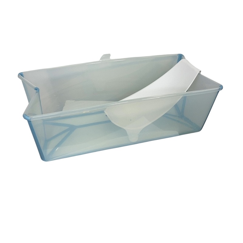 Condition: Gently Used Spacious baby tubs are nice, but storing them is a hassle. This stylish tub from Stokke solves this problem with an ingenious folding design. The infant insert is perfect for newborns and the tub is roomy enough to accommodate big ki