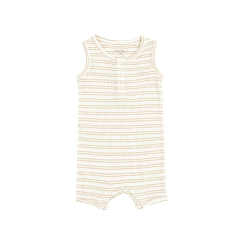 Striped Oxford Tan Shortie Sleeveless Romper 0-3 m