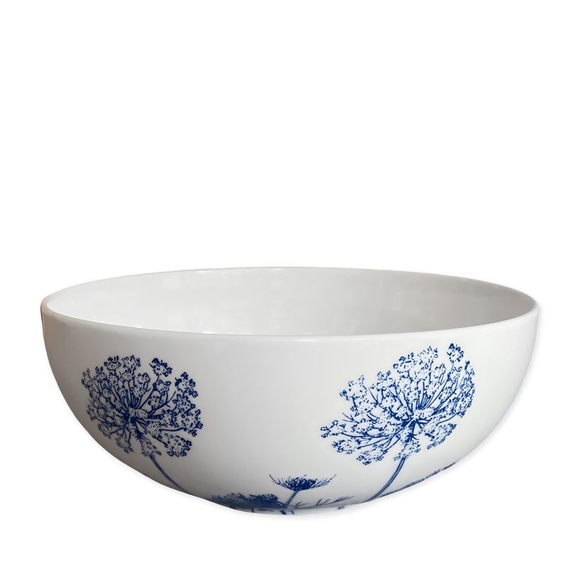 Caskata makes dinnerware for those who love to entertain. That joie de vivre and celebratory atmosphere makes its way into each piece of the brands blend of classic and contemporary designs, recognizable by their creative patterns,enduring quality,and light touch. TheSummer Blues series capture the flowers that flourish outsideCaskara’sNew England studios and transports them to creamy-hued, premium porcelain. The Summer Blues Vegetable Serving Bowl provides a delightful and sophisticatedbowl in which to serve sides, desserts, and of course, your favorite grains and veggies.