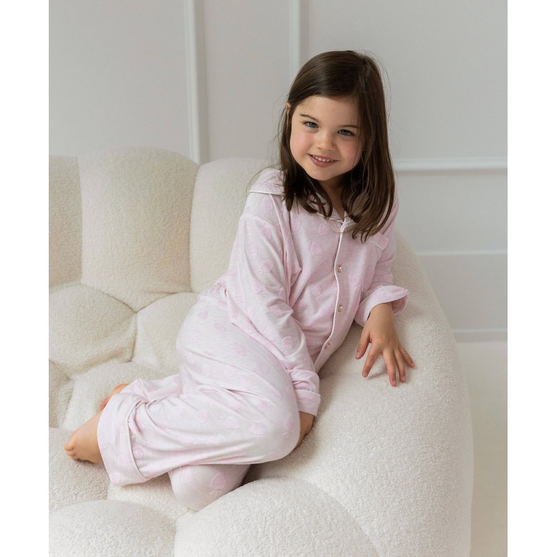 Description:Enjoy the perfect blend of style and comfort with the Super Soft Strawberry Set, adorned with a charming pink strawberry pattern.The button-up top features a classic notched collar, delicate piping, and elegant buttons for a polished finish.Pai