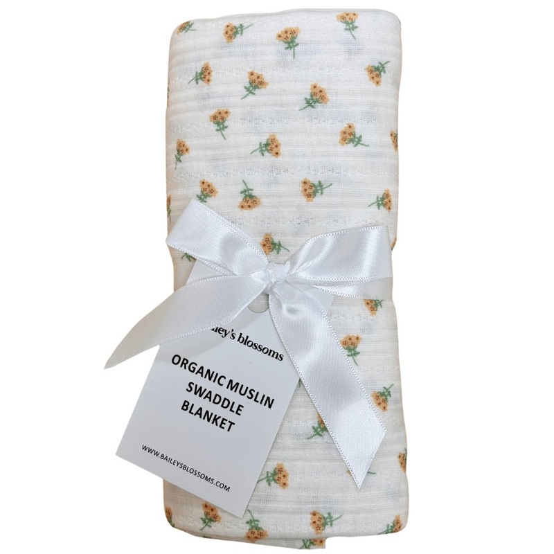 Introducing our beautiful Swaddle Blanket in a delicate yellow floral print! Made from ultra-soft and breathable muslin fabric, this blanket is the perfect addition to your baby’s nursery. The generous size allows for easy swaddling and can also be used as a stroller cover, nursing cover, or tummy time blanket. Keep your little one cozy and comfortable with our Swaddle Blanket in Yellow Floral. Perfect for gifting or for your own little bundle of joy! *Matching headbands sold separately.