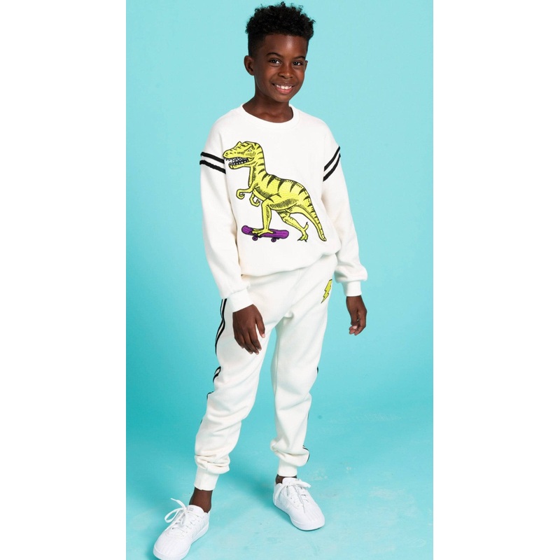 - Unleash prehistoric fun with this set, featuring a bold embroidered dinosaur graphic on a sporty sweatshirt.