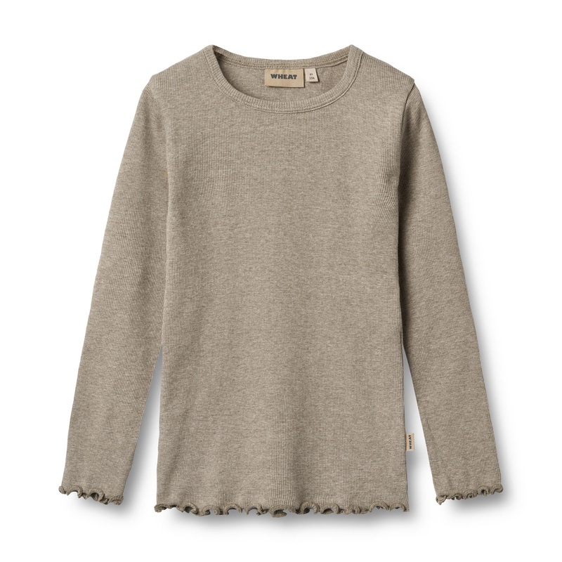Long-sleeved rib T-shirt in organic cotton for children. - Fitted and stretchable - Round neckline with soft rib - Overlocked edges at the cuffs and hem - Ribbed structure Wheat's T-shirts are a true essential in your childs wardrobe, as the T-shirts are s