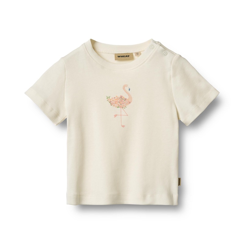 Basic short-sleeved T-shirt with front print in soft organic cotton for babies. - Signature print at the front - Regular fit - Press buttons at the shoulder Wheat's T-shirts are a true essential in your childs wardrobe, as the T-shirts are soft and comfort