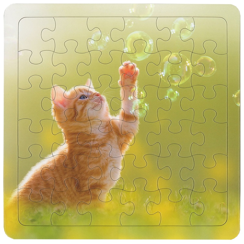 This Tawny Kitten 36-Piece Puzzle CH8423 will provide fun and entertainment for your little one. It features a frame tray and an adorable kitten playing with bubbles.