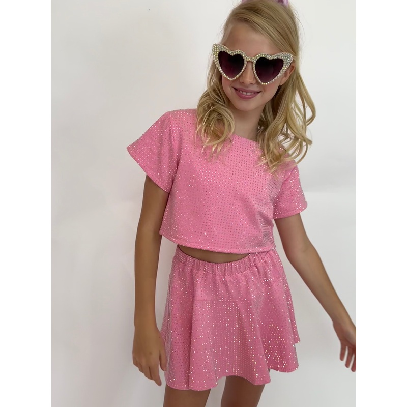 - Shine bright with the stunning Taylor Crystal Set, featuring a crop top and matching skirt embellished with sparkling crystals.