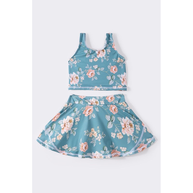 Your little one will be the belle of the beach in our Teal Floral Print Girl 2pc Swimsuit. With a playful teal floral print, this swimsuit is perfect for splashing around in the waves. Made with high-quality materials for all-day comfort. (Cuteness overloa