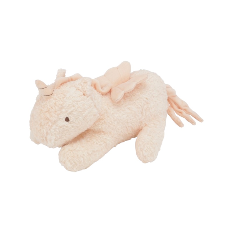 Soft teddy unicorn made in organic sherpa with recycled polyester.