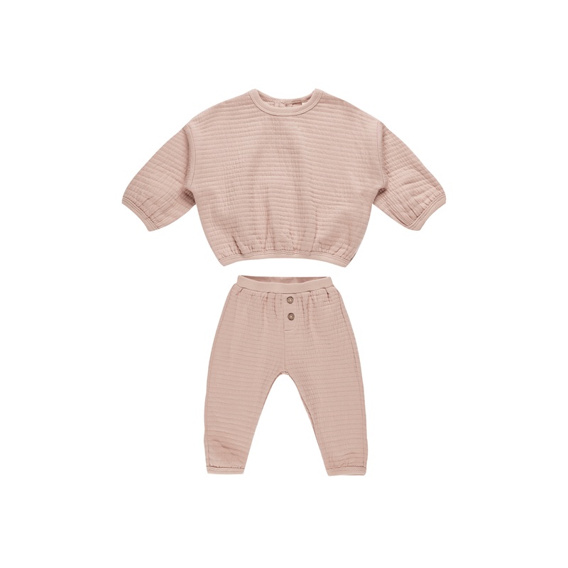 Our textured sweat set includes a softest long sleeve top and cozy pants, perfect for everyday wear!Featuring our 'blush colorway.Care: Machine wash cold. Tumble dry low.Made of 93% Organic Cotton, 5% Polyester, 2% Elastane