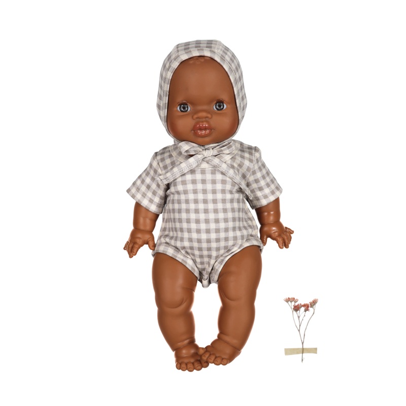 Our lovely little romper and bonnet set for Minikane or Miniland Dolls is so soft and easy to dress for little hands. Your little one will love matching her doll!