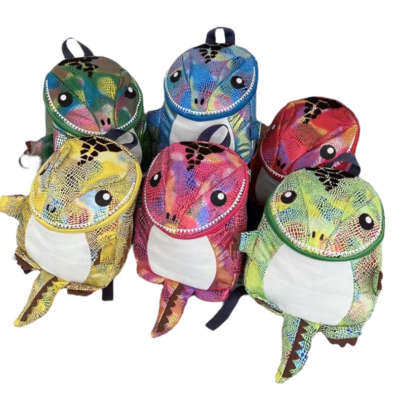 Carnivorous dinosaur backpack with arms, legs, a tail, and a zipper that opens his mouth for any school supplies you need to store.