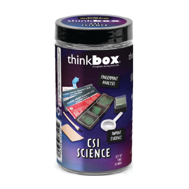 Become and investigator! CSI Science includes dusting powder, inestigator tag & sticker, finger print example card, 2 finger print film cards, ink pad, magnifying glass, dusting brush, sticker brand and instructions.