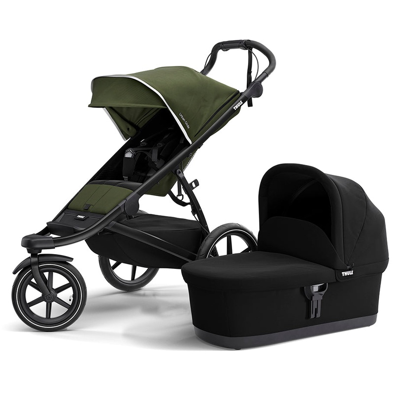 Thule Urban Glide 2 Single Jogging Stroller + Bassinet Bundle – Cypress Green / Black