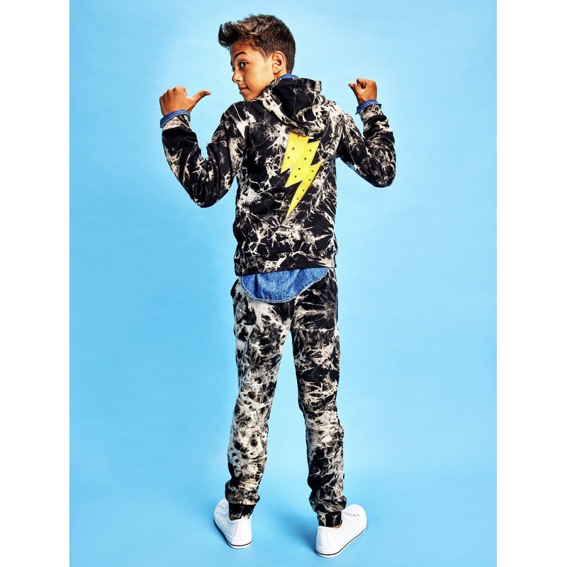 Description:Electrify their wardrobe with this bold tie-dye jogger set, featuring a striking thunderbolt applique on the back.The unique black-and-white tie-dye pattern adds a trendy, one-of-a-kind look to this versatile set.Includes a hoodie and matching