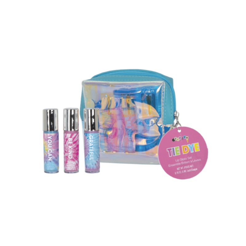 Bring on the good vibes with the Tie Dye Mini Lip Gloss Set by Iscream
