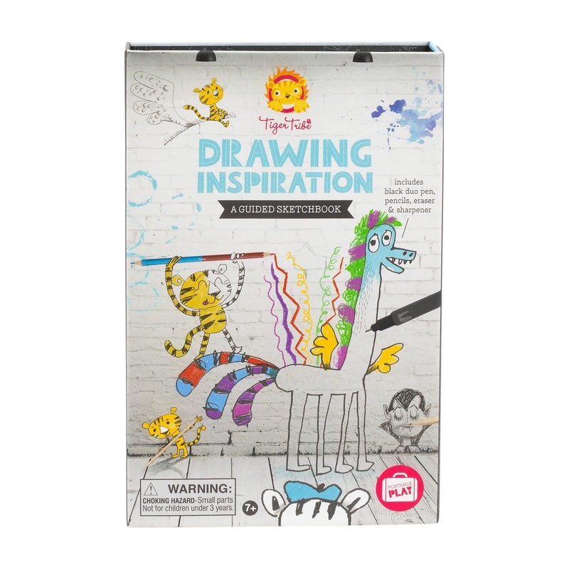 This humorous and engaging kit is designed to help older kids explore their own creativity through sketching. Taking a whimsical, not so serious approach to drawing, this kit encourages kids to forget perfect technique and instead focus on expression, imagination, exploration and fun!Filled with all the art materials required for sketching and aguided sketchbook thatcomes with a tour guide a familiar, somewhat scribbly Toby the Tiger. Toby cheers kids on as they move through the collection of inspiring prompts and challenges, all designed to get creative juices flowing, pencil grips loosened and to encourage personal style to shine through.Suitable for kids age 7+Drawing Inspiration – A Guided Sketchbook kit includes: 50 page Guided Sketchbook 1 x dual-tip fineliner pen (0.4mm and 12.mm) 1 x 2B artists pencil 3 x double-ended colouring pencils (6 colours) eraser and sharpener handy storage box Cherrie Baby Boutique is a leading stockist of Melbourne-based toy brand, Tiger Tribe – toys for little tigers on the go.