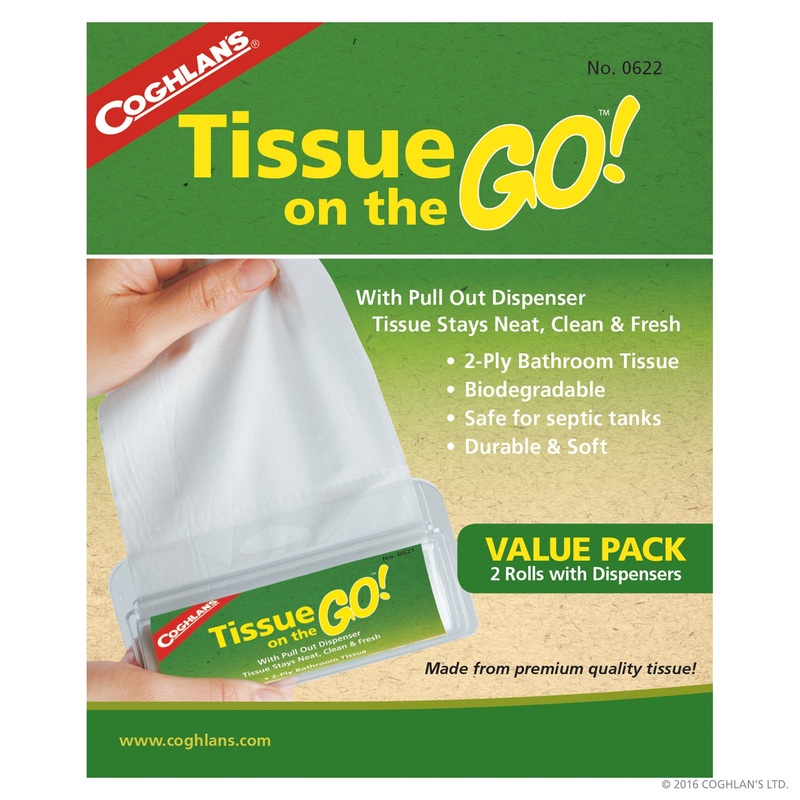 Keep tissue handy in this pull-out dispenser that keeps the soft 2-ply rolls clean, neat, and dry. Great to use as camping toilet paper.RV and septicCoghlans Tissue on the Go 0622