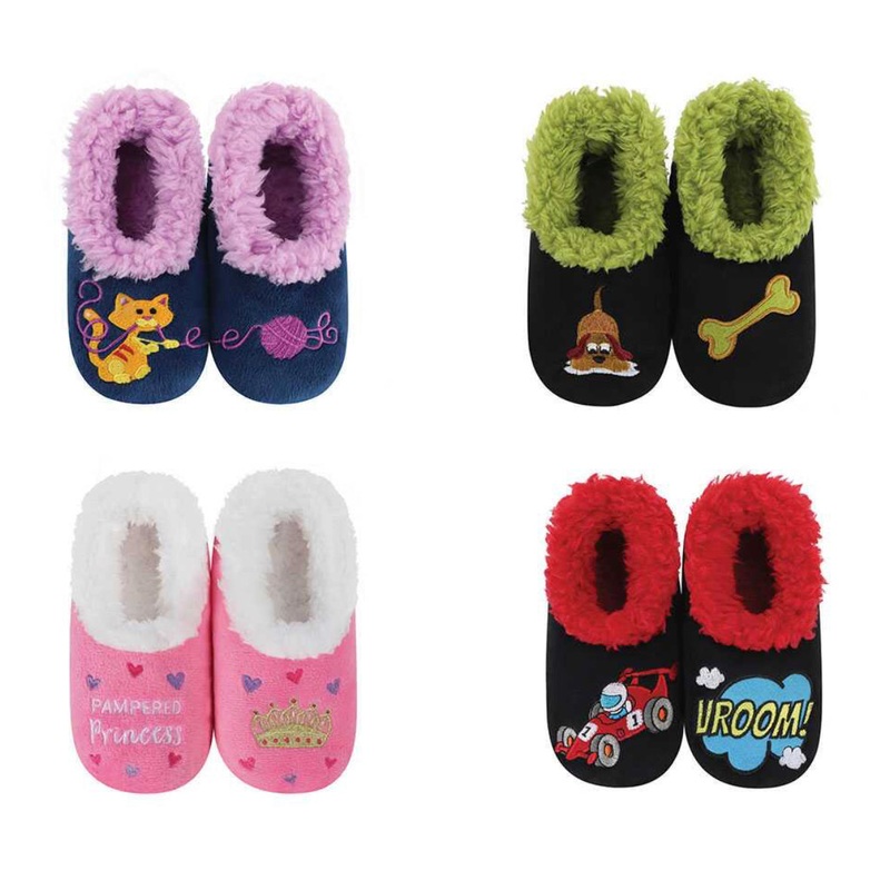 4 super soft designs. Lined with cozy Sherpa. Non skid soles. Machine washable.
