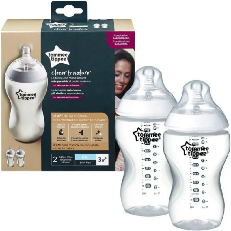 The Tommee Tippee Closer to Nature Baby Bottles are designed to make bottle feeding as natural as possible for both you and your baby. Specially developed for babies from 3 months and up, these 340ml anti-colic bottles feature a unique teat that mimics the