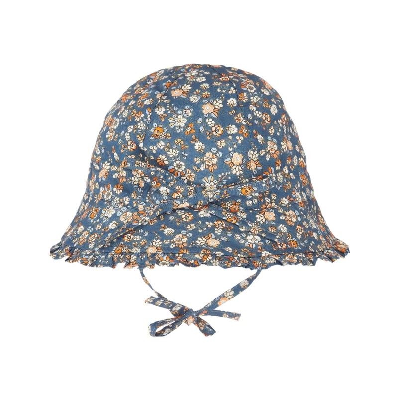 Toshi Bell Hat Libby is a flattering and feminine bell shaped hat. The baby sunhat is crafted from the finest quality 100% cotton. The head tie offers adjustable sizing and a chin tie secures the hat. The sunhat is fully lined for increased comfort. Pretty styling is created with a softly frilled border. Toshi Bell Hat Libby Midnight features a delicate and petite vintage inspired floral design in a classic French navy colourway.