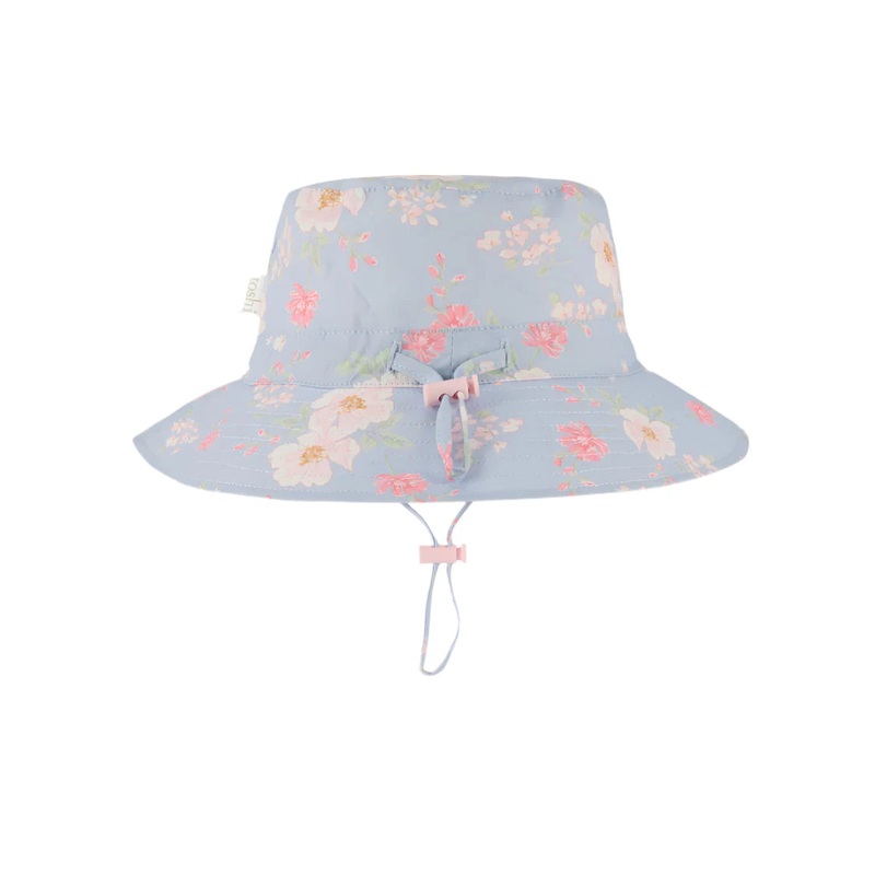Toshi presents the classic Sunhat Desert Rose, ideal for children of all ages. The sunhat has a broad and well-structured brim. The UPF 50+ UV rating indicates maximum sun protection.The head tie with toggle creates adjustable sizing. A chin tie with toggle secures the hat for ease of wear. The security release clasp on the chin tie is designed to enhance wearer safety. The classic Toshi Sunhat is crafted from the finest quality 100% cotton and is fully lined for additional comfort.