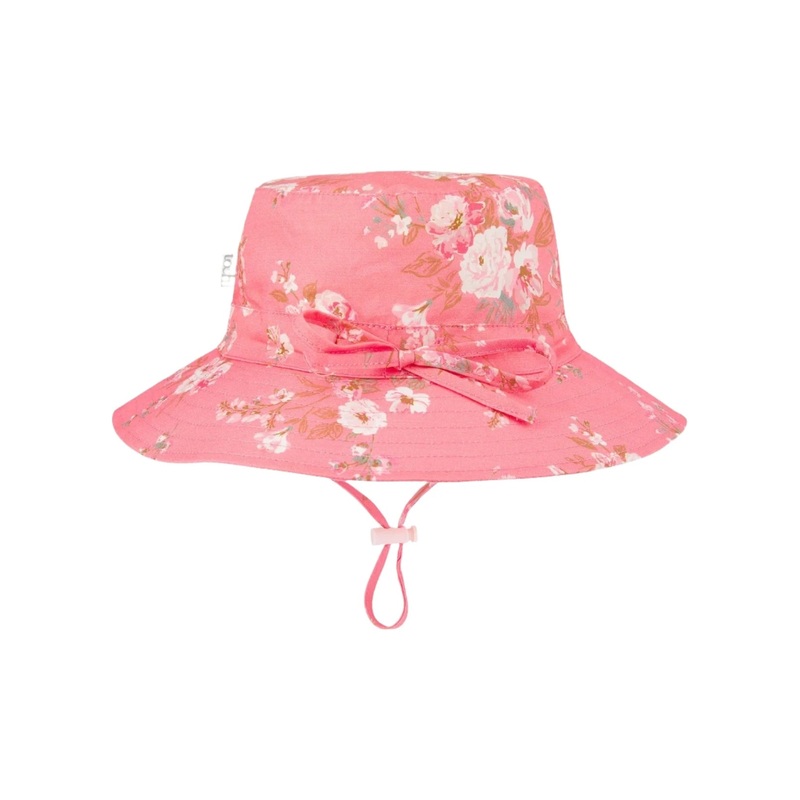Toshi presents the classic Sunhat Felicia, ideal for children of all ages. The broad and well-structured brim offers increased sun protection. A UPF 50 + UV rating is provided for colourway Scarlett. A head tie creates adjustable sizing and the chin tie wi