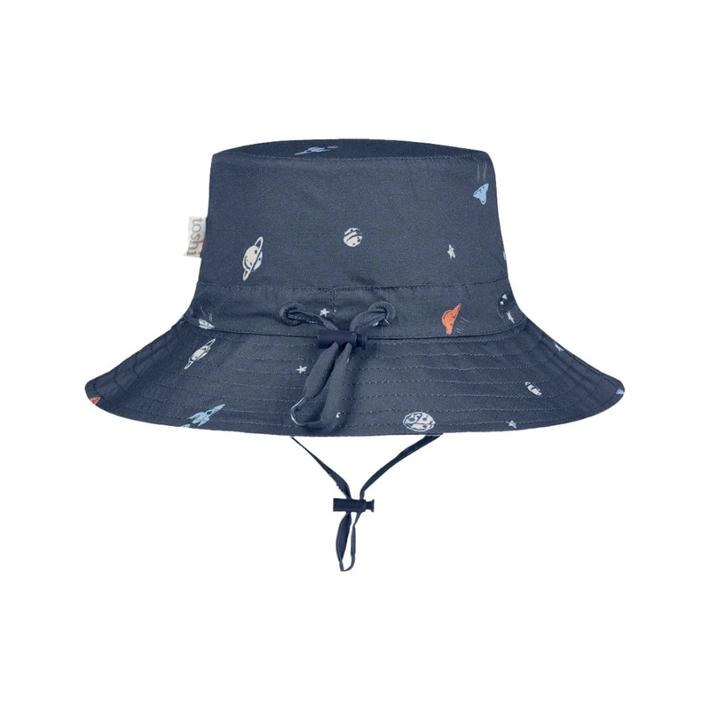 UPF 50+ UV protectionQuality and durable 100% cotton Head tie and toggle for adjustable sizingChin tie and toggle to secure hatSecurity release clasp for increased wearer safetyBroad brim for enhanced sun protectionOriginal and exclusive Toshi print design
