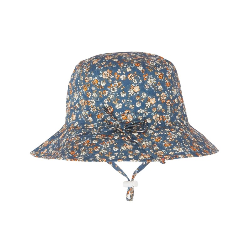 Toshi presents the classic Sunhat Libby, an ideal sunhat for children of all ages. The broad and well-structured brim offers increased sun protection. A head tie creates adjustable sizing and the chin tie with toggle secures the hat and offers ease of wear. The security release clasp on the chin tie is designed to enhance wearer safety. Sunhat Libby is crafted from the finest quality 100% cotton and is fully lined for additional comfort. Sunhat Libby Midnight features a delicate and petite vintage inspired floral design in a classic French navy colourway.