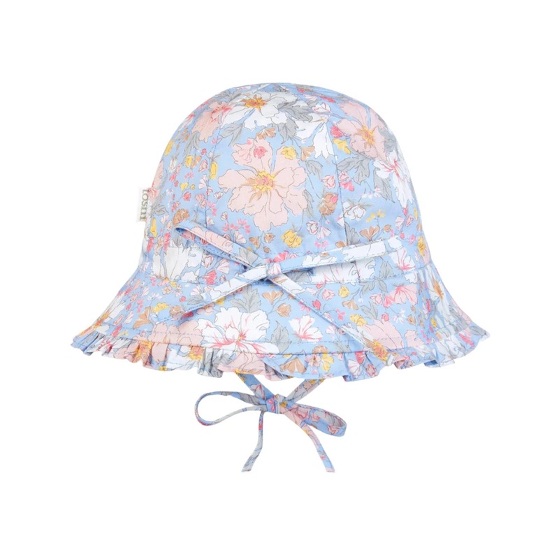 The Toshi Bell Hat Yasmin is a flattering and feminine bell shaped baby hat. Toshi Bell Hat is crafted from the finest quality 100% cotton. The head tie offers adjustable sizing and a chin tie secures the hat. The sunhat is fully lined for increased comfort. Pretty styling is created with a softly frilled border.