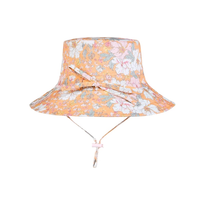 Finest quality 100% cotton Head tie and toggle for adjustable sizingChin tie and toggle to secure hatSecurity release clasp for increased wearer safetyBroad brim for enhanced sun protectionOriginal and exclusive Toshi print designFully lined for increased