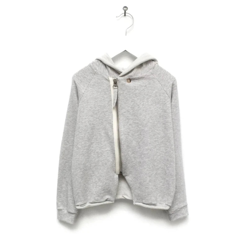 keep your little one cozy and stylish in this grey marl treehouse lavoni hoodie for baby and toddler. made with soft, organic cotton, it features an asymmetrical front line and a contrast grosgrain zipper. perfect for those looking for a super soft brushed cotton hoodie with a unique twist.