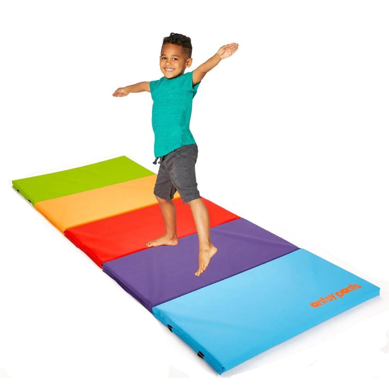 Perfect for kids to practice their jumps, tumbles, and summersaults safely! Featuring Velcro to easily attach to other gym mats, gymnastic beams, and baby tumbling gyms. Folds flat for easy storage and transport. Ages 4+