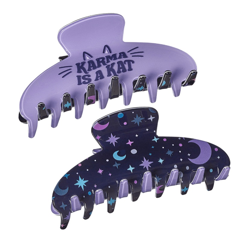 A new spin on a trendy hair accessory that is purrfect! This two-sided large claw clip comes with a unique design on each side. Exclusively from Top Trenz, these fun hair clips are comfy to wear and let you pull your hair up or back with ease and style! Perfect for all hair types and ages 5 and up. Great for quick up-dos on the go or a chic hairstyle.