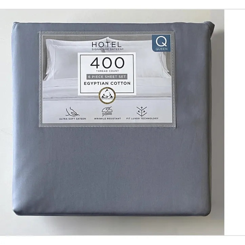 Ultimate Gray 400 Thread Count Egyptian Cotton Queen Sheet Set – 6 Pieces