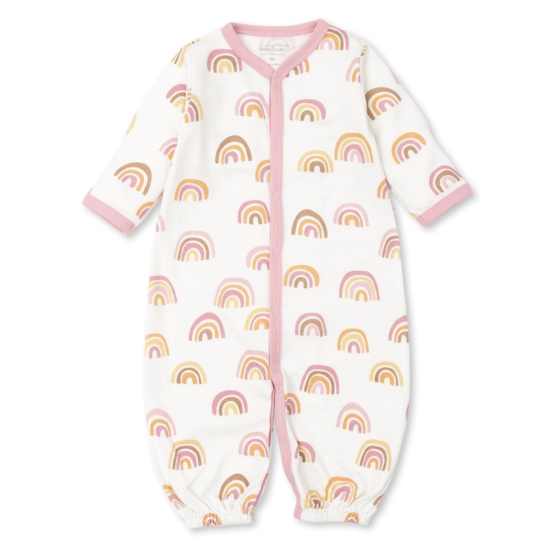 Playfully patterned with a soft rainbow print, our cozy converter gown is made from the softest Pima cotton for complete comfort. With snaps that convert gown to playsuit, this multi-functional piece can easily go from nap time to playtime.100% Pima Cotton
