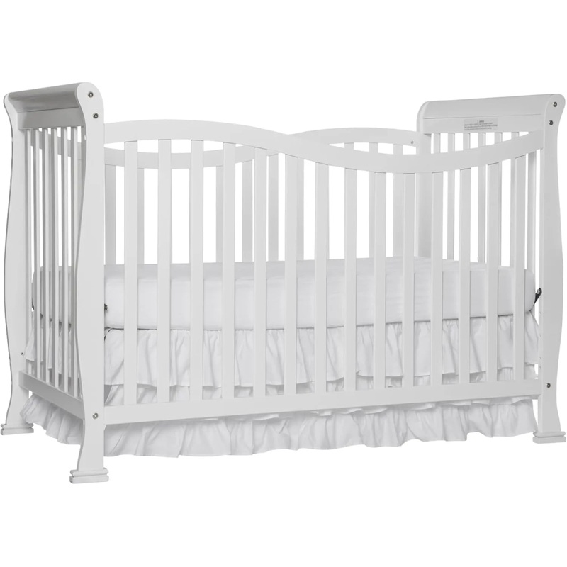 Designed with timeless appeal, the Violet 7-in-1 Crib from Dream On Me is built to grow with your child. It features a beautiful flowing design that will coordinate with a wide variety of decorative style. This unique 7-in-1 crib can transition easily to a comfy toddler bed, daybed, youth bed and full size bed as your child grows. It is also equipped with an easy to use four position mattress support system for added adaptability. This crib is available in a range of finishes.