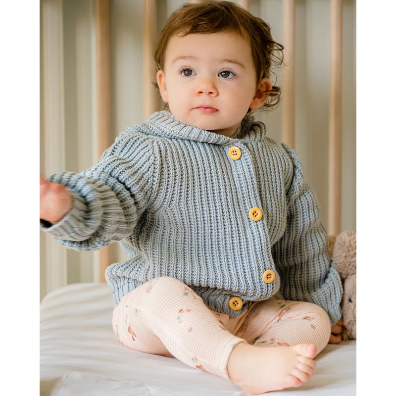 Our pima cotton knit hoody cardigan is an essential for your little one’s fall and winter wardrobe. Made with the softest Pima Cotton yarns from Peru in an adorable chunky waffle stitch. The cardigan features a fun hood as well as Magnetic Buttons all the way down the front placket for easy changing.It is the perfect layering piece that will match any outfit! Intentionally designed to be gender neutral.