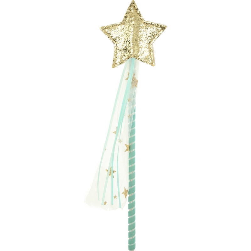 This beautiful star wand, with mint ribbons, white tulle and gold stars, is an essential for a dress up box. It’s the perfect gift for a would-be fairy or princess.